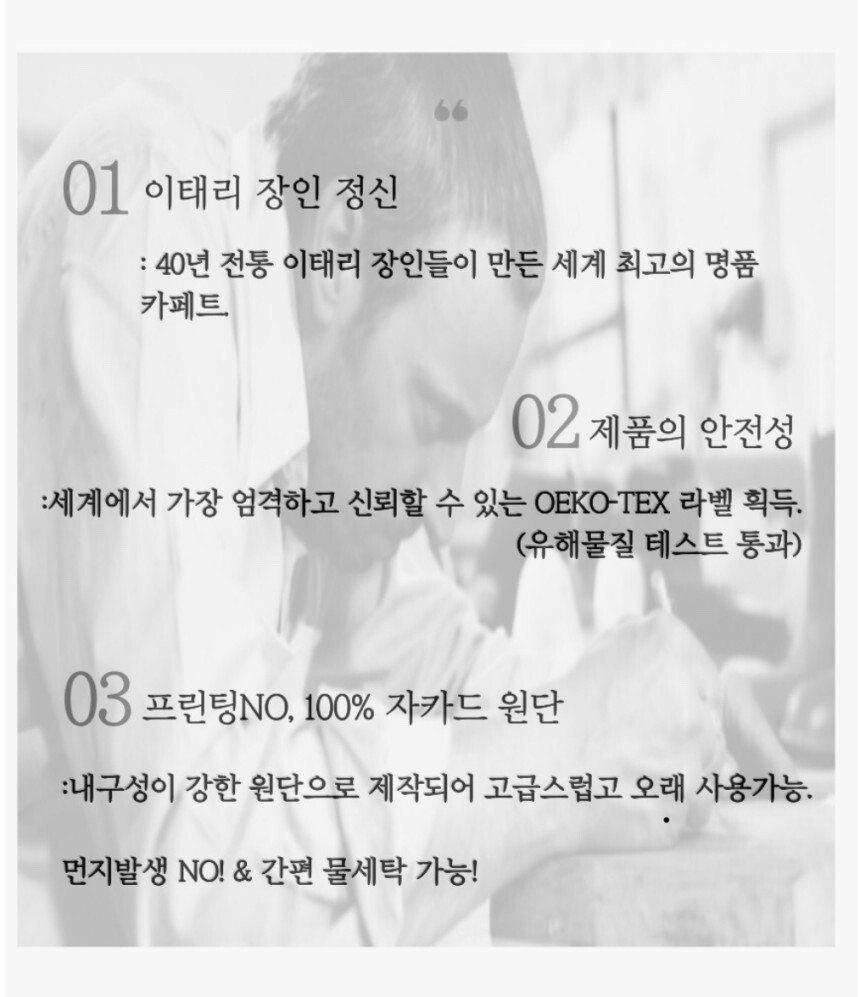 "이태리 장인의 100% 핸드메이드 자카드 러그는 공간에서 최상의 럭셔리한 분위기를 만들어 주어요."