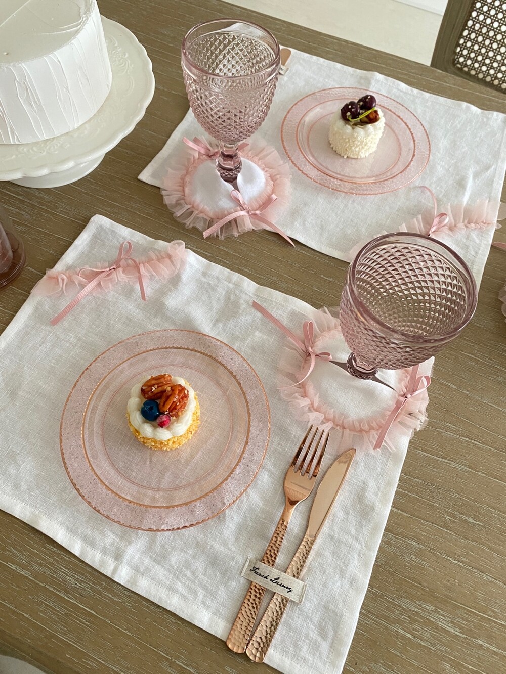 🟪끌로에 ( 핑크망사프릴+골지리본) 디자인