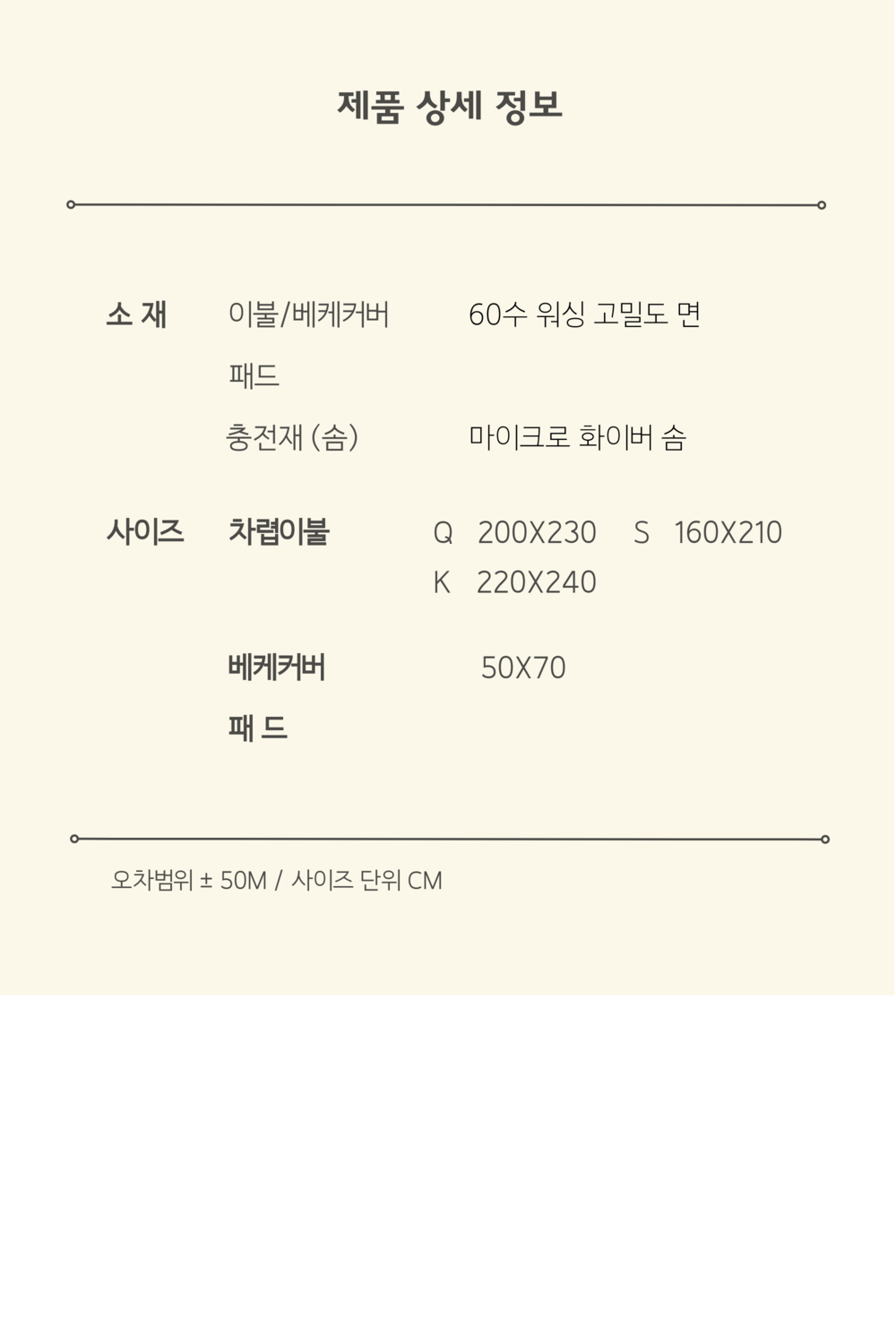 킹: 베게2장 (50*70)+ 이불(마이크로화이바 차렵솜 포함) 220*240