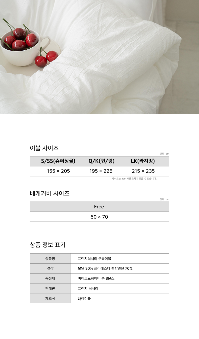 [부띠끄제이 x 프렌치럭셔리] 기본/민자 구름이불 사계절 8온스 모달 차렵이불