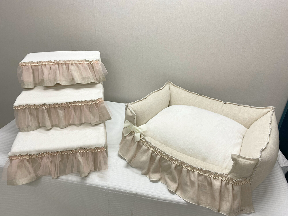 로렌하우스도 방석 부분앞면 밍크퍼 뒷면 린넨으로 사계절 사용 가능하게주문 해주셨어요 ㅎㅎ